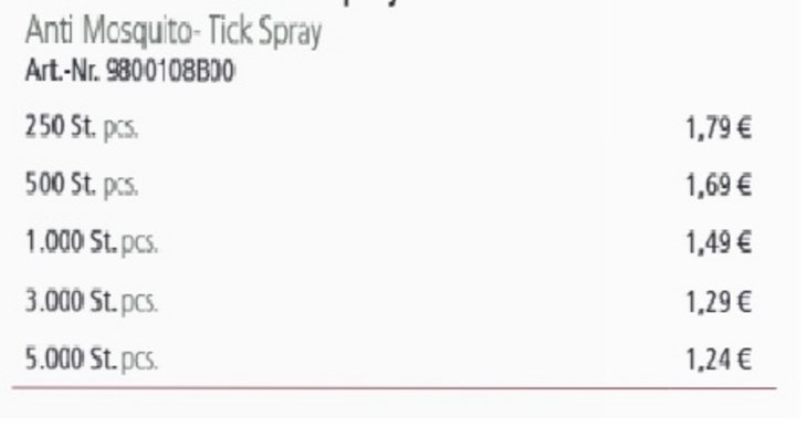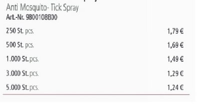Preisliste Anti Mückenspray Details
