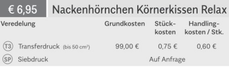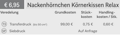 Preisliste Nackenhörnchen Körnerkissen Relax mit Logo Details