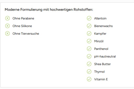 Made in Germany - Dermatologisch "sehr gut" getestet, ohne Parabene, pH-Haut-neutral, ohne Silikone, Bienenwachs, Rückfettend, Shea Butter, Kampfer, Schnell einziehend,