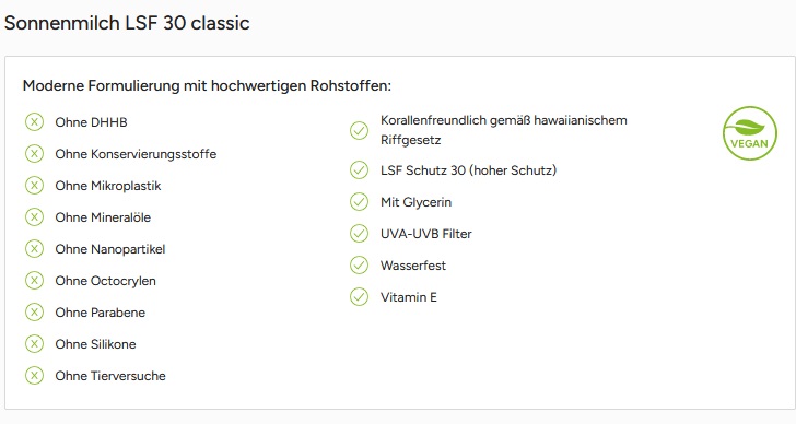 Füllung oben: Sonnenmilch (LSF 30). Wasserfester und schnell einziehender Sonnenschutz mit Vitamin E und Pro-Vitamin B5. Ausgewogener UVA- /UVB-Breitbandfilter. Lichtschutzfaktor 30 (Hohes Schutzniveau). Mit klassischem Sonnenschutz-Duft. Im DuoPack ideal kombiniert mit After Sun Lotion. Beruhigende, intensive Feuchtigkeitspflege für sonnengereizte Haut. Ausgewogene Pflegeformel mit Aloe Vera, Vitamin E, Panthenol und Allantoin. Zieht schnell ein und verleiht ein geschmeidiges, samtweiches Hautgefühl. Angenehmer, unaufdringlicher Unisex-Duft. Beide Füllungen sind dermatologisch von einem unabhängigen Institut „Sehr gut hautverträglich“ bewertet.Verpackung: 2 x 50 ml Duopack mit KlappdeckelFüllung: Sonnenmilch LSF 30 + After Sun LotionDekoration: Body LabelDruckart: Offset digitalDruck: Body Label (Etikett weiß) auf Vorder- und RückseiteDruckfarben: 4c (CMYK)Volumen: 2 x 50 mlDeckelfarbe: weiß, gelborange, blau, grün, rot oder schwarzHaltbarkeit: 3 Jahre / 6 Monate nach Anbruch und bei sachgerechter LagerungMindestbestellmenge: 250 StückHergestellt in Deutschland, Dermatologisch "sehr gut" getestet vegan, ohne Konservierungsstoffe, ohne Mineralöle, ohne Parabene, ohne Silikone