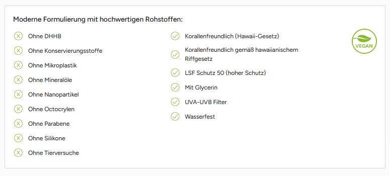 Einfache Anwendung ohne Verreiben: Aufsprühen - fertig. Das transparente Sonnenschutz-Spray mit LSF 50 (hohes Schutzniveau) zieht schnell ein, klebt nicht und hinterlässt keine sichtbaren Rückstände auf der Haut. Die Formulierung mit einer ausgewogenen UVA + UVB Filterkombination und wertvollem Vitamin E schützt die Haut zuverlässig vor Sonnenbrand und hilft bei regelmäßiger Anwendung, den Auswirkungen lichtbedingter, vorzeitiger Hautalterung vorzubeugen.Verpackung: 50 ml Flasche aus 100% recyceltem PET mit BumperBumperfarben: weiß, schwarz, rot, grün oder blauFüllung: Sonnenschutz-Spray LSF 50Druckart: Offset digitalDruckfarben: 4c (CMYK)Dekoration: Body Label auf Vorder- und Rückseite (Etikett weiß), matt und hochglanzTuben- und Deckelfarbe: weißHaltbarkeit: 3 Jahre / 6 Monate nach Anbruch bei sachagerechter Lagerung Mindestbestellmenge: 250 StückLieferzeit: ca. 2-3 Wochen ab DruckfreigabeHergestellt in DeutschlandDermatologisch "sehr gut" getestetohne Konservierungsstoffe, ohne Mineralöle, ohne Parabene, ohne Silikone, ohne Mikroplastik, ohne Tierversuche, veganmit Glycerin, schnell einziehend, extra wasserfest, ohne weiße Rückstände, Klebt nicht, Sofortschutz