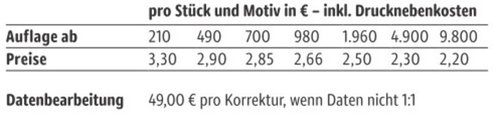 Preisliste 3er Duplo Pack mit Logo