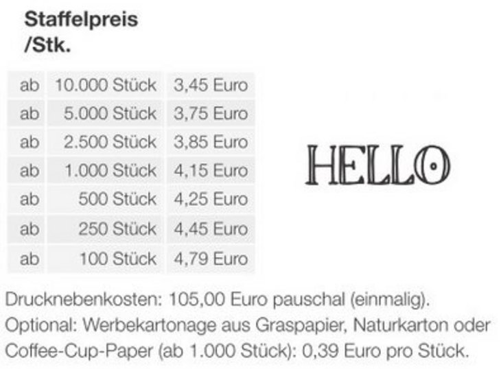 Preisliste 3D Präsent Schiff mit Lindt HELLO Mini mit Logo