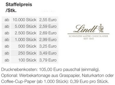 Preisliste 3D Präsent Schiff mit Lindt Lindor Pralinés mit Logo