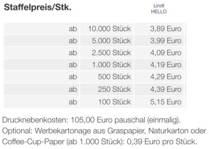 Lindt HELLO: Nice to sweet you! Entdecken Sie die aufregenden neuen Kombinationen mit der zartschmelzenden Lindt HELLO Schokolade. Produkt mit Klimabeitrag, FSC®-zertifiziert. Produkt mit finanziellem Klimabeitrag, auf FSC ® -zertifiziertem Karton aus nachhaltiger Forstwirtschaft und anderen kontrollierten Quellen. Inhalt: 1 Schokoladentafel von Lindt „HELLO“ (100 g).Geschmacksrichtungen: Strawberry Cheesecake, Crunchy Nougat, Caramel Brownie, Cookies & Cream, Roasted Nuts & Toffee oder Pecan Crumble.Haltbarkeit: 6 MonateFormat/Ausführung: ca. 197 x 61 x 13 mm. Kartonage 4-farbig bedruckbar.Gleich mitbestellen: Einzelversandkarton für den Postversand: 0,59 Euro pro Stück.Lieferzeit: ca. 15 Arbeitstage nach Druckfreigabe.Mindestbestellmenge: 100 Stück