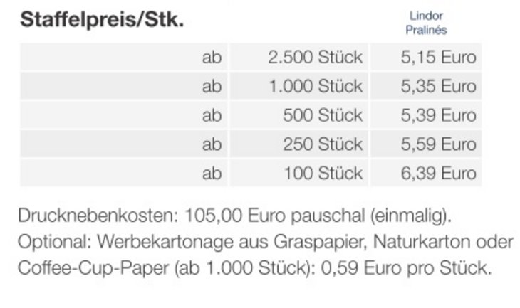 Preisliste Süße Präsentbox Maxi Lindt Lindor Pralinés mit Logo Details
