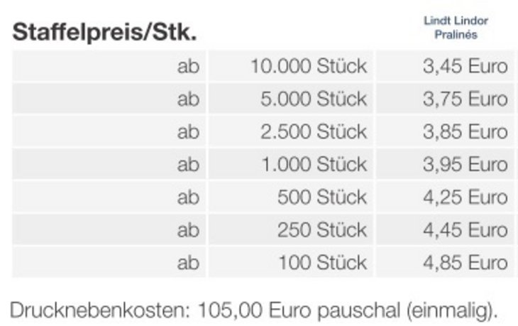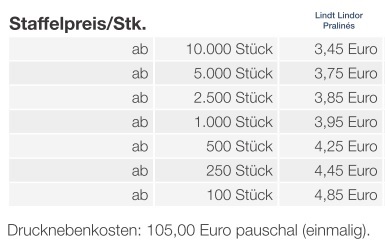 Preisliste Werbetasche mit süßer Füllung Lindt Londor Pralinés Details