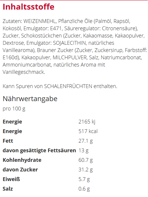 Preisliste Coffee Cookies Flowpack mit Logo Details
