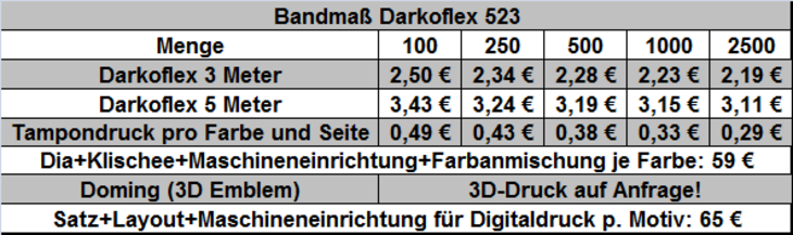 Qualitäts-Bandmaß mit schwarz gummierter Oberfläche. Diese Spezial-Gummierung erhöht den Grip und verbessert das Handling nicht nur bei Feuchtigkeit.Werbefläche: 40mm (Durchmesser)Gewicht: 0,119kg / 0,205kgAktuelle Preise auf Anfrage !