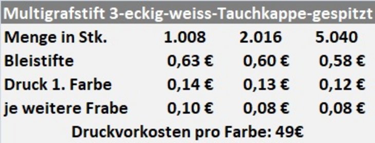 Preisliste Multigrafstift mit Logo