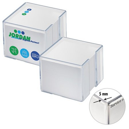Maße: ca. 105 x 105 x 90 mmDruckart: SiebdruckDruckfläche: 91 x 75 mm, 25 x 75 mmGewicht: 179 g, mit Papier 691gFarbe: galsklarMaterial: PSMindestbestellmenge: 100 StückLieferzeit: ca. 10 Tage ab DruckfreigabeArtikelnummern: HP-7029 - ohne Papier; HP-7029PC - inkl. Papier - Aktuelle Preise auf Anfrage!